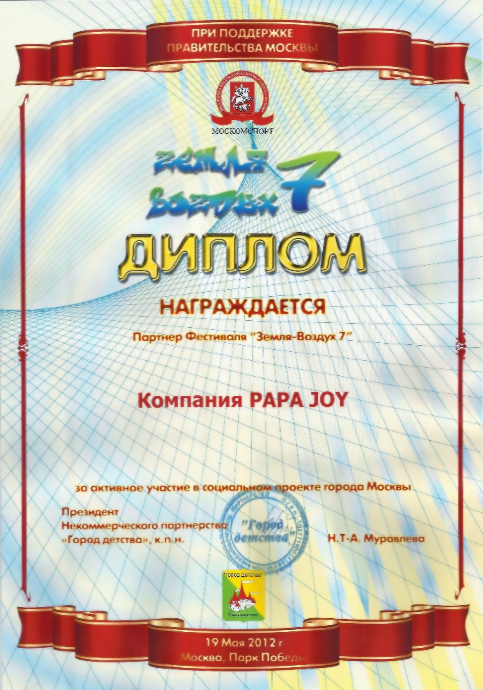 В 2014 году компания Papa Joy совместно с телеканалом Nickelodeon стал спонсором фестиваля «Сказочный Остров», который проводился в Москве, в парке Сокольники, под лозунгом «День, когда пора играть». Целью мероприятия стало продвижение активного, здорового образа жизни среди юных жителей столицы. Победители фотоконкурса в рамках фестиваля были награждены машинками Joy Car.