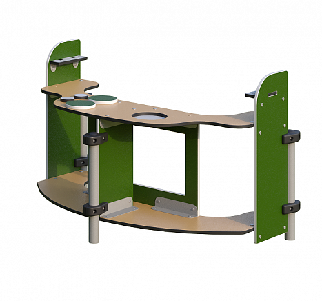 Оборудование уличное представляет собой устойчивую конструкцию, обеспечивающую безопасные условия для развивающих занятий на открытом воздухе.