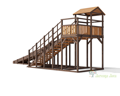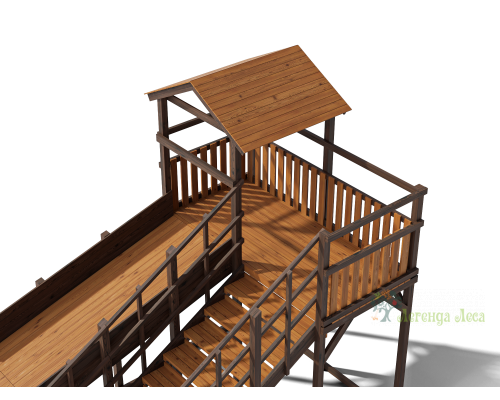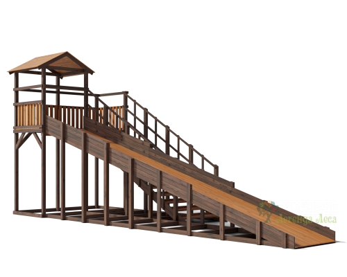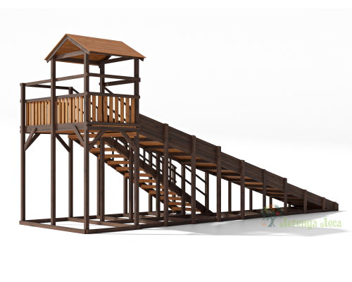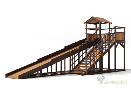 Деревянная зимняя горка Легенда Леса Полярная звезда 6 с крышей золотой тик - орех скат 8,2 метров