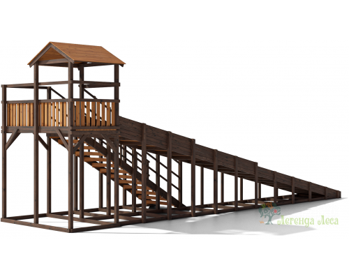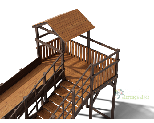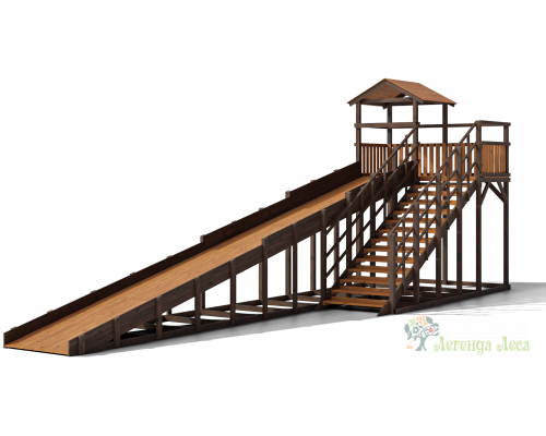 Деревянная зимняя горка Легенда Леса Полярная звезда 7 с крышей золотой тик - орех скат 10 метров