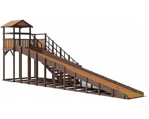 - Каркас горки изготовлен из клееного бруса сечением 80 х 80. Данный брус имеет высокие эксплуатационные и прочностные характеристики.
