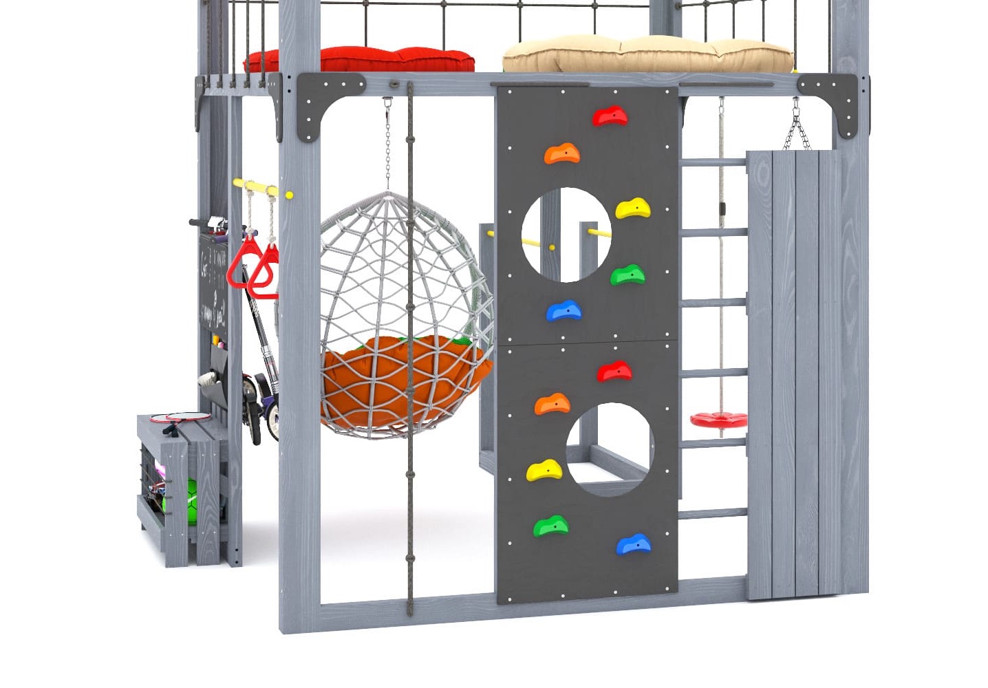 Детская деревянная площадка Савушка Куб-1 серый с подушками и коконом для дачи