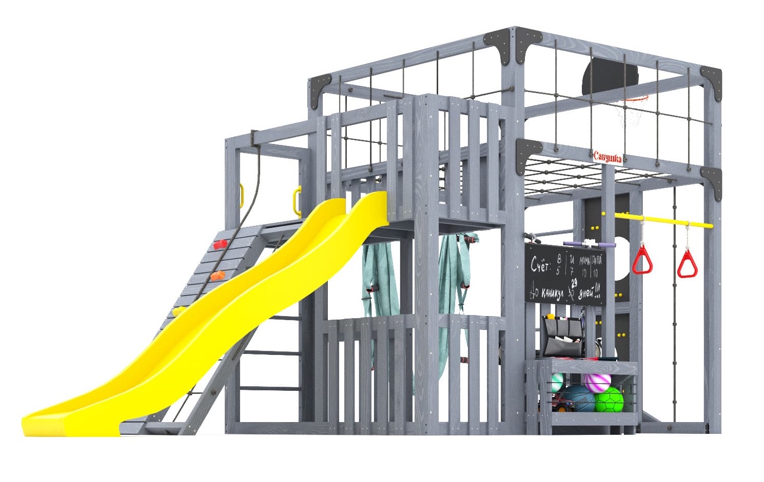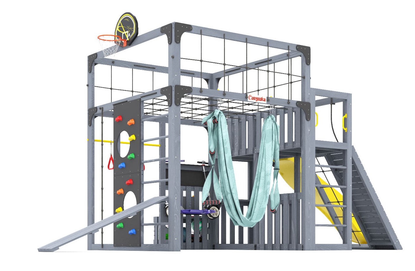 Детская деревянная площадка Савушка Куб-3 серый с гамаком для йоги для дачи