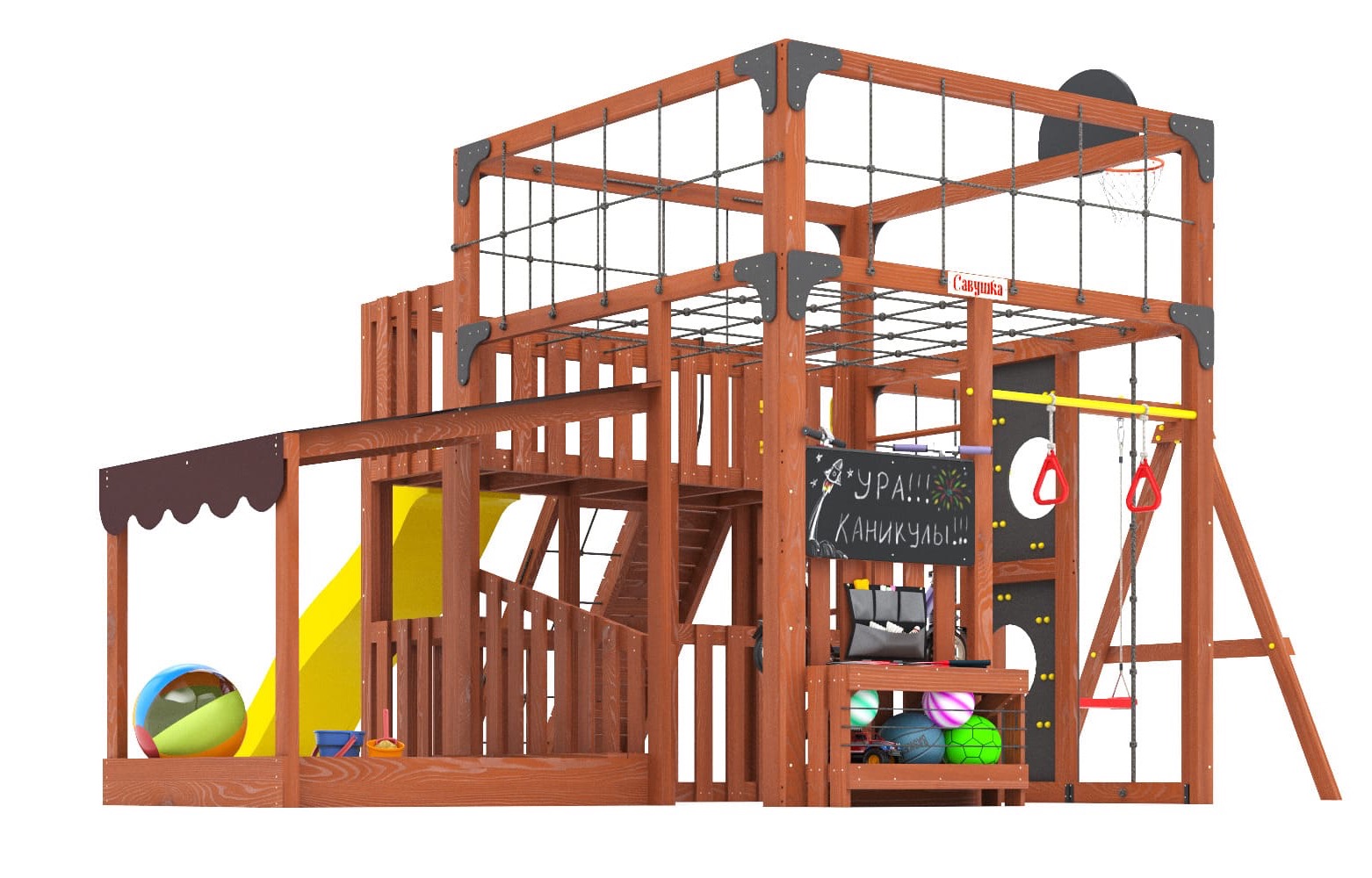 Детская деревянная площадка Савушка Куб - это территория активного отдыха, йоги и спорта для всей семьи! Здесь спорт превращается в игру, а отдых – в полезное времяпрепровождение. Савушка Куб объединяет спорт, йогу, релаксацию и командные игры, давая детям и взрослым возможность развиваться и веселиться вместе.