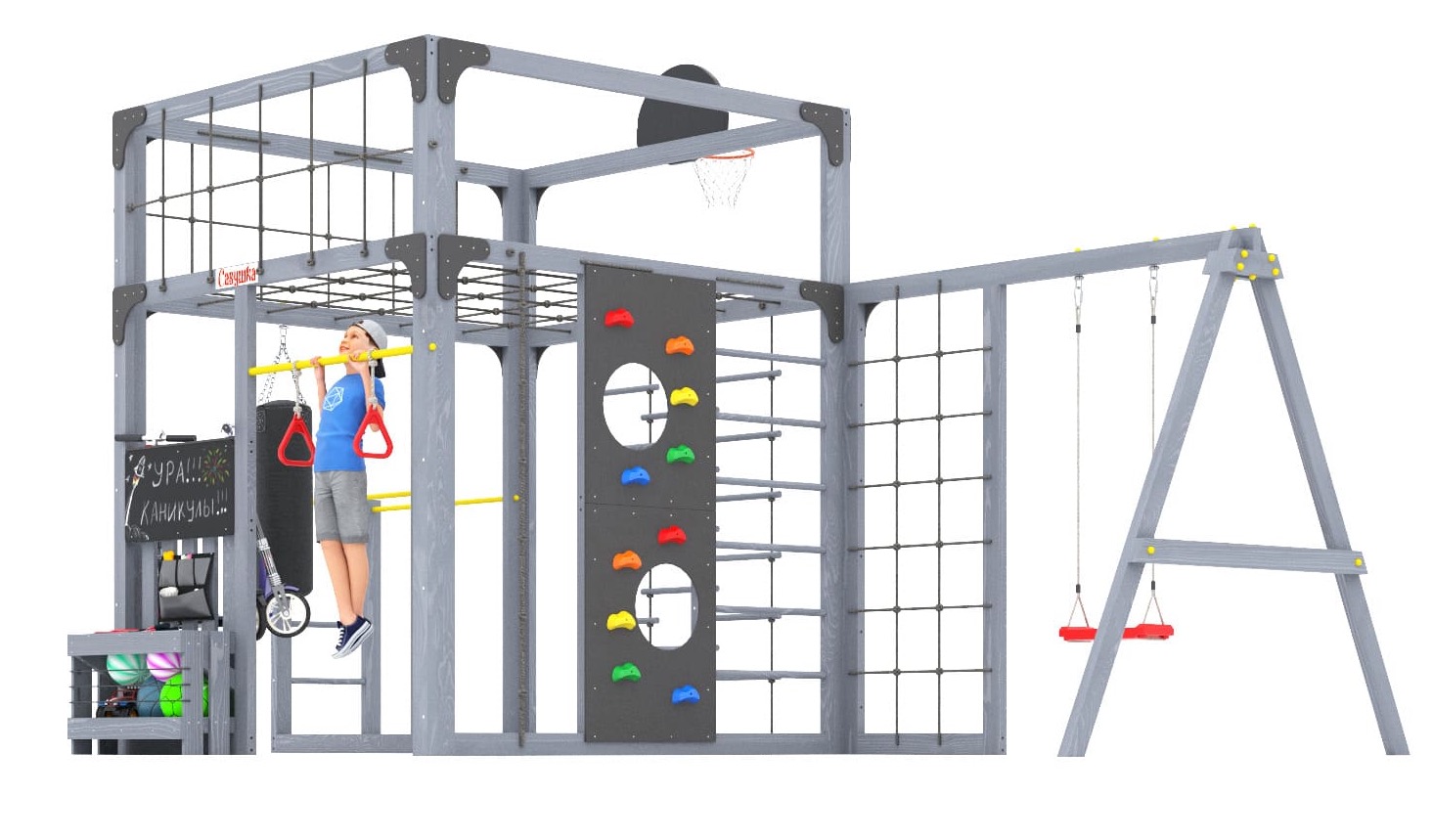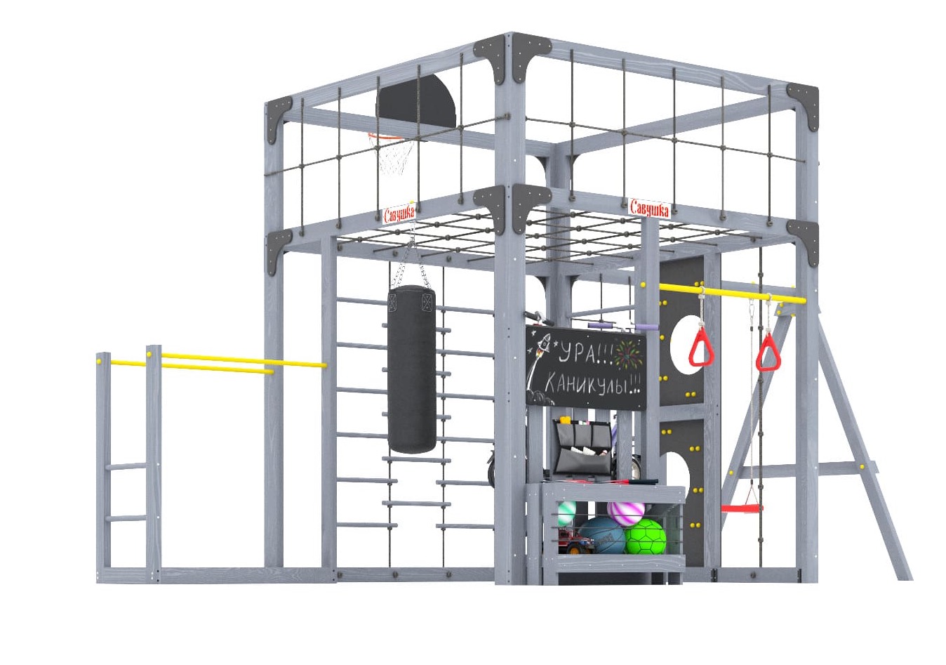 Детская деревянная площадка Савушка Куб - это территория активного отдыха, йоги и спорта для всей семьи! Здесь спорт превращается в игру, а отдых – в полезное времяпрепровождение. Савушка Куб объединяет спорт, йогу, релаксацию и командные игры, давая детям и взрослым возможность развиваться и веселиться вместе.