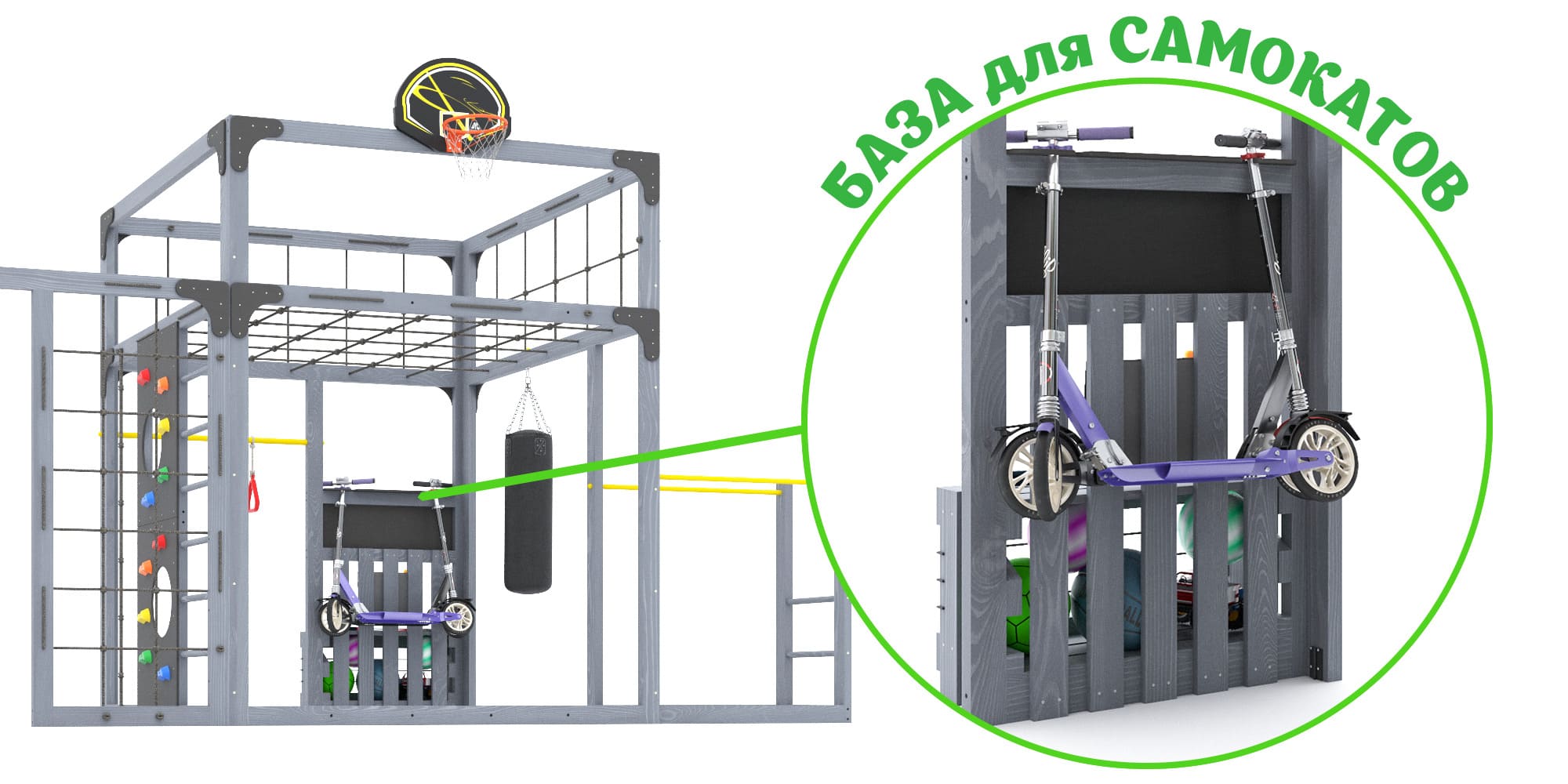 - База для размещения самокатов – 1 шт. (рассчитана на 2 самоката)