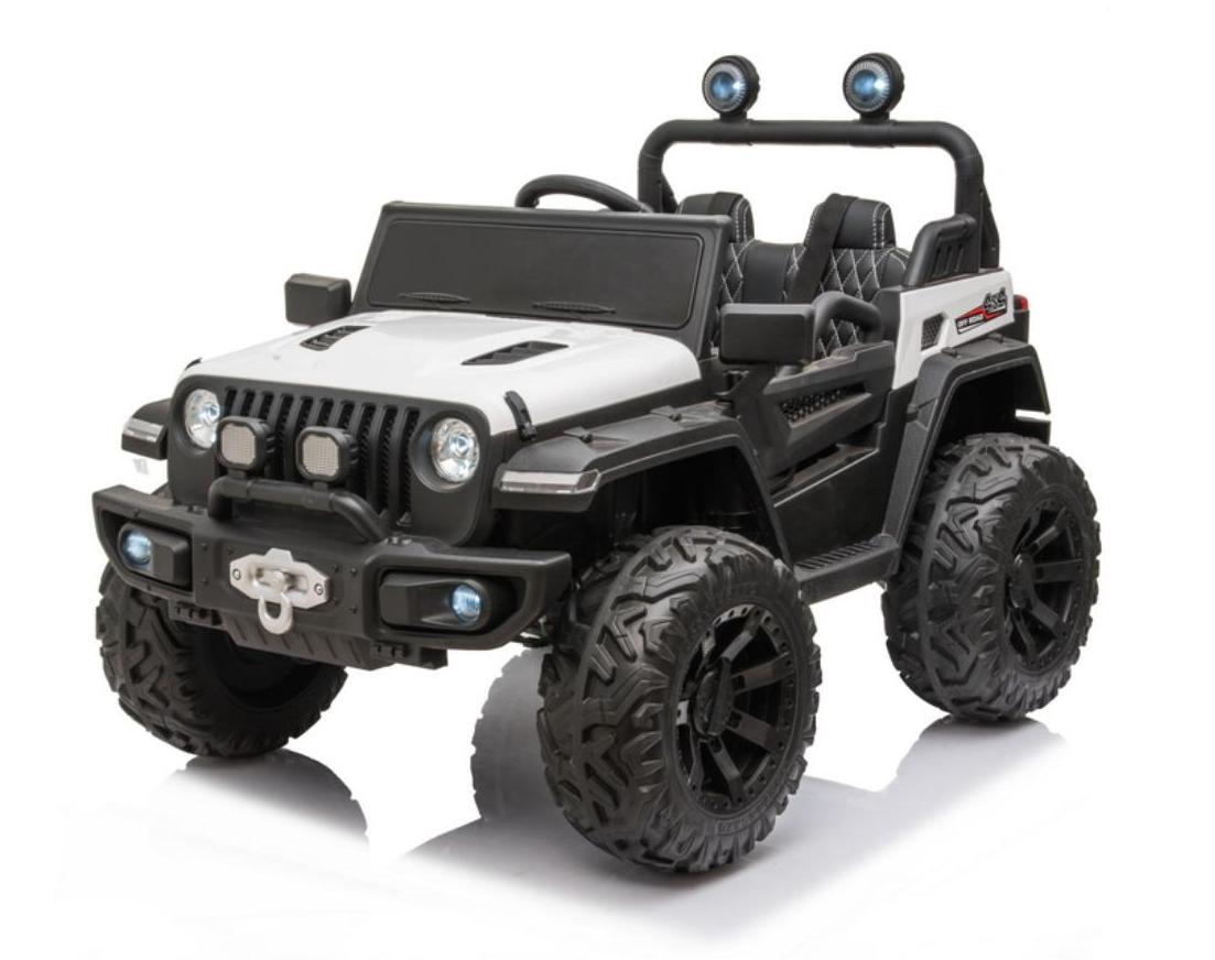 Автомобиль легко заводится с ключа, способен разогнаться до 5 км/ч. Широкие резиновые колеса и высокий клиренс позволяют проехать по любой дорожной поверхности и взять любые препятствия за считанные секунды. Один заряд аккумулятора обеспечит до 1,5-2 часов непрерывного катания!