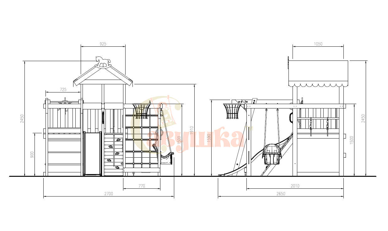 Расположение деталей комплекса может быть изменено по желанию покупателя.
