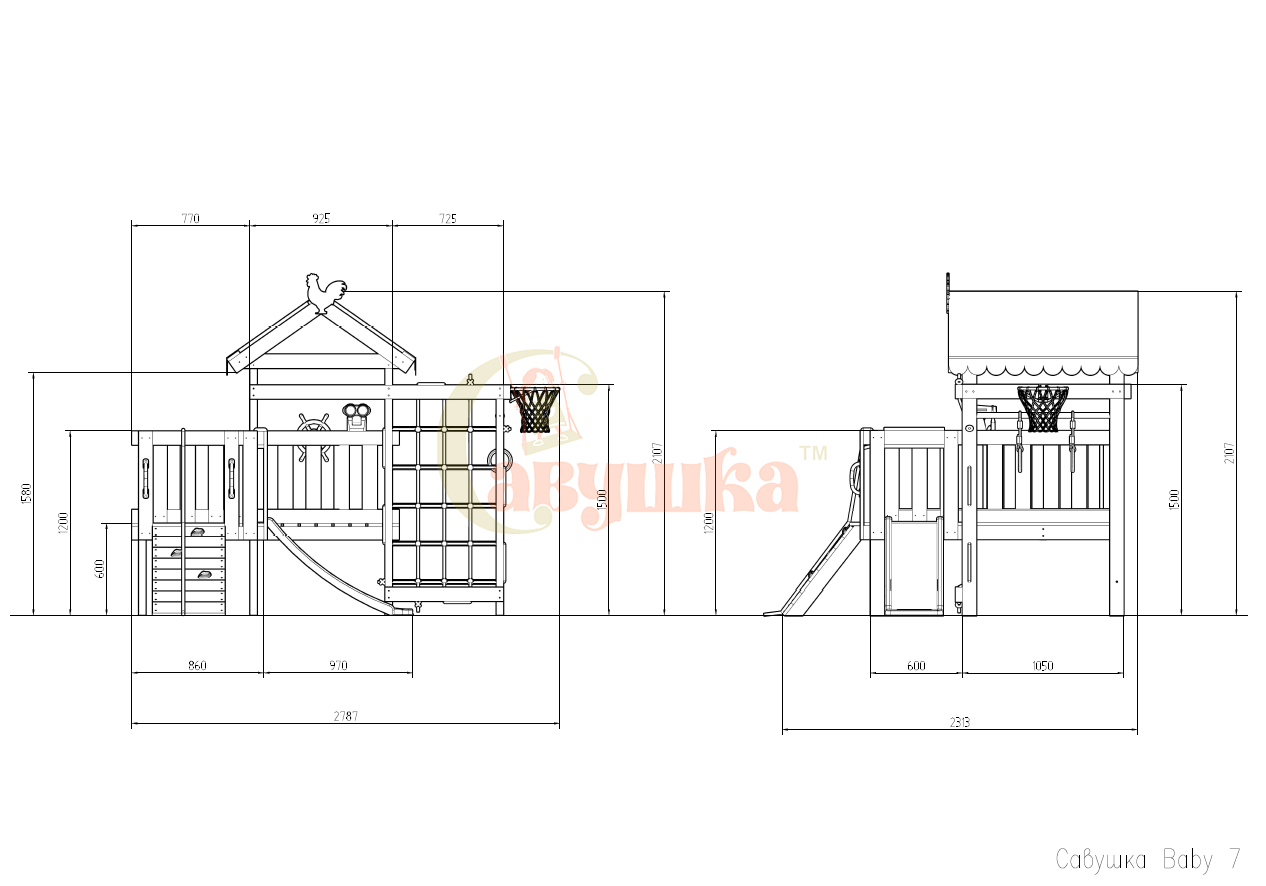 - Особенности новой серии – привлекательный разноцветный выкрас ограждения игровой платформы, и, что особенно важно, усиление конструктивной прочности, которая отличает серию Савушка Baby Club от домашних комплексов , предназначенных для частного использования.