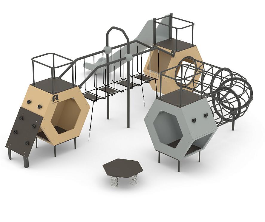 Игровой комплекс для тематических игр и физического развития предназначен для детей в возрасте от 7 лет.