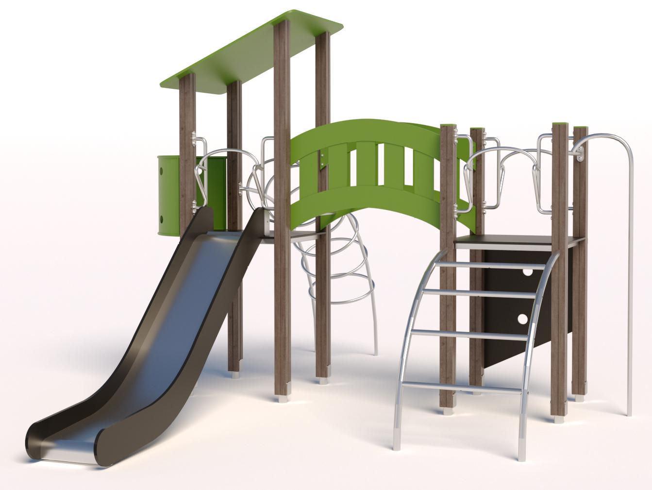 Детский комплекс - антивандальное оборудование, предназначено для установки в местах активного отдыха и на уличных детских или спортивных площадках.