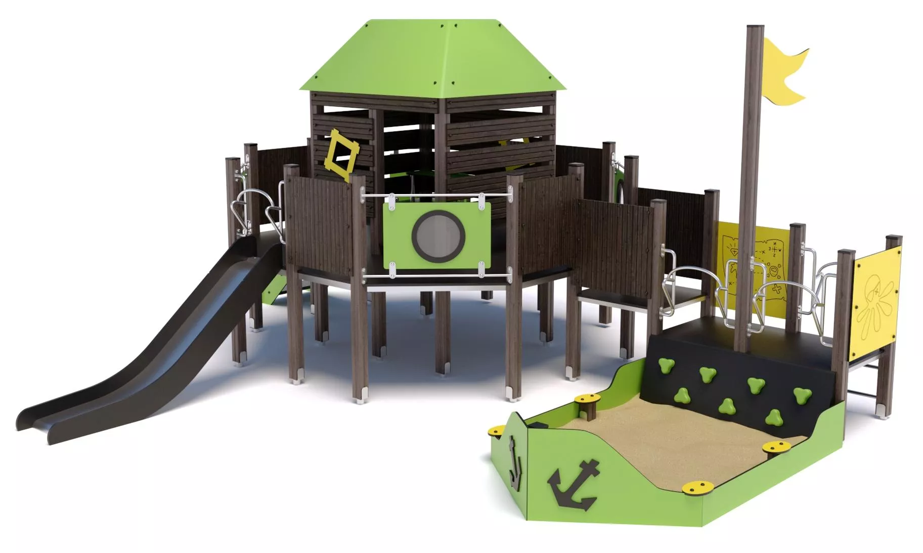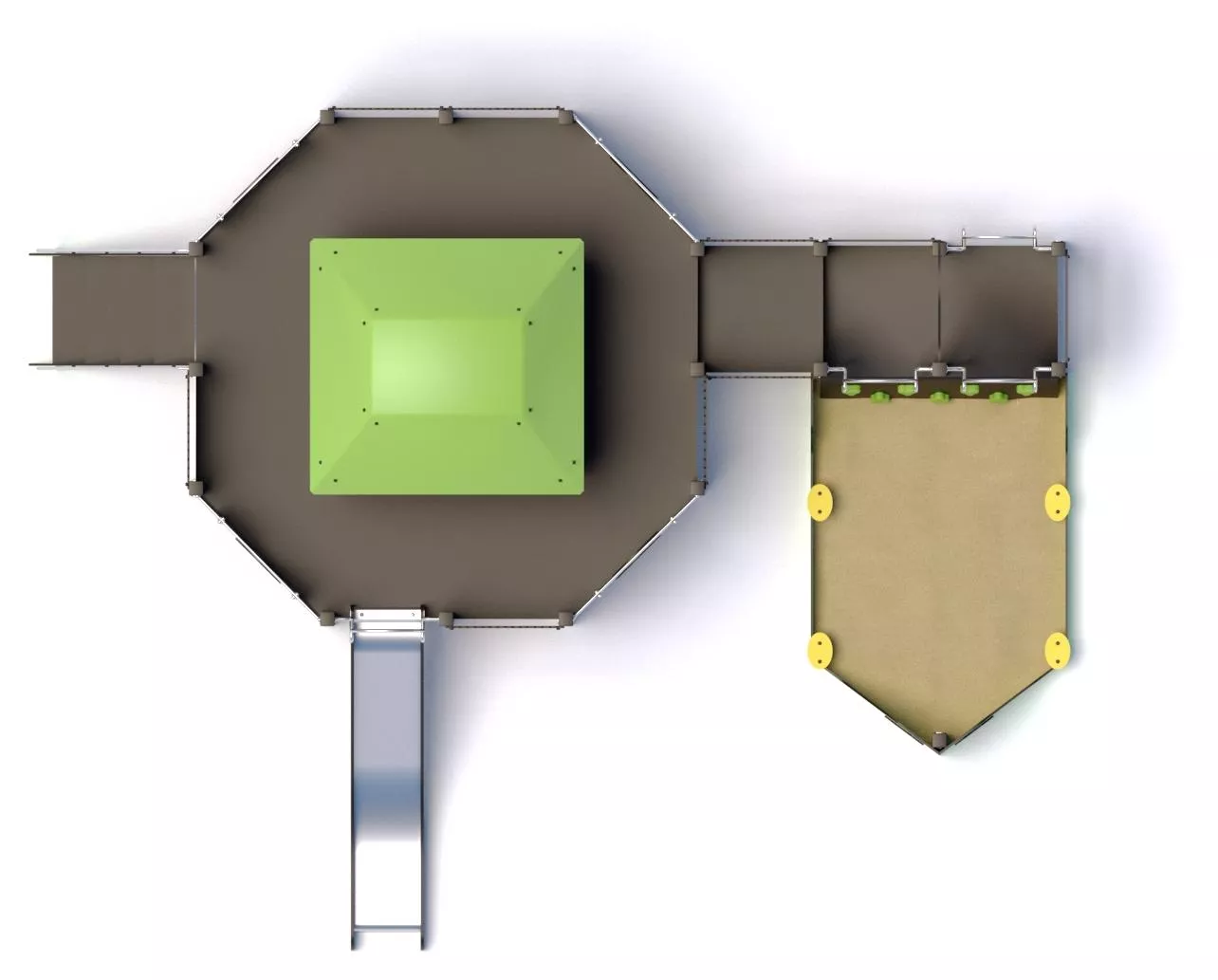 Детский комплекс - антивандальное оборудование, предназначено для установки в местах активного отдыха и на уличных детских или спортивных площадках.