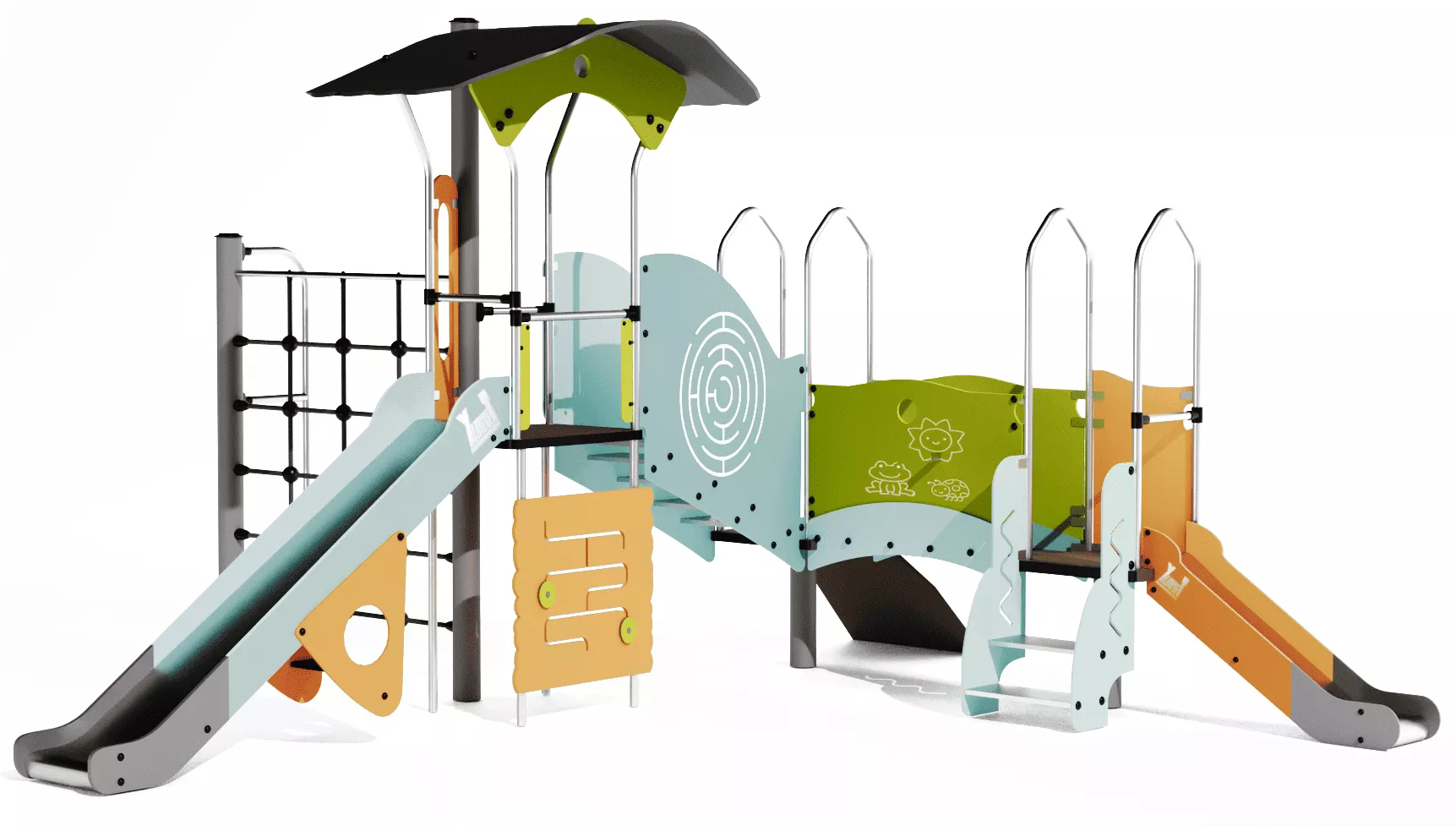 Детский комплекс - антивандальное оборудование, предназначено для установки в местах активного отдыха и на уличных детских или спортивных площадках.