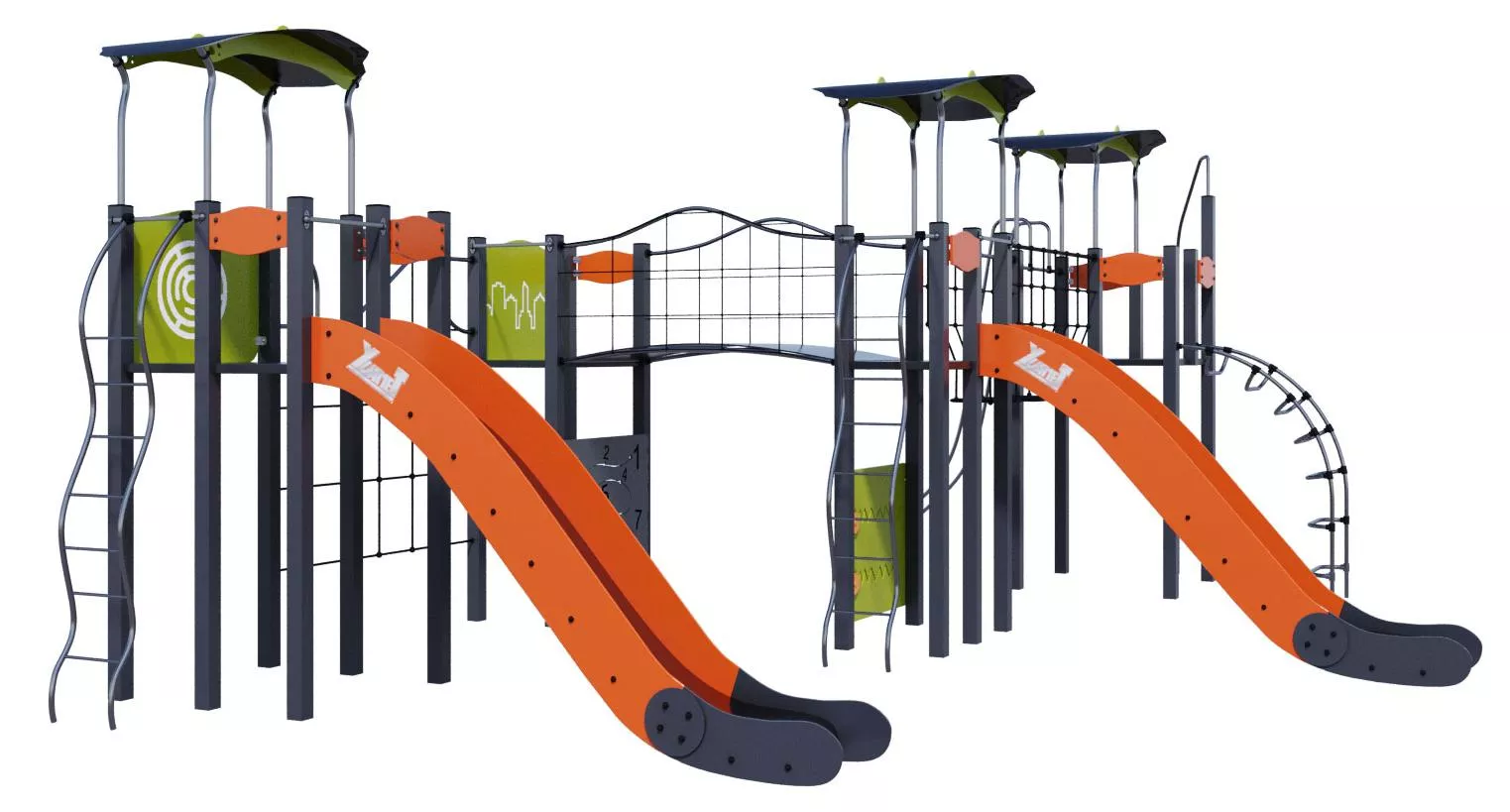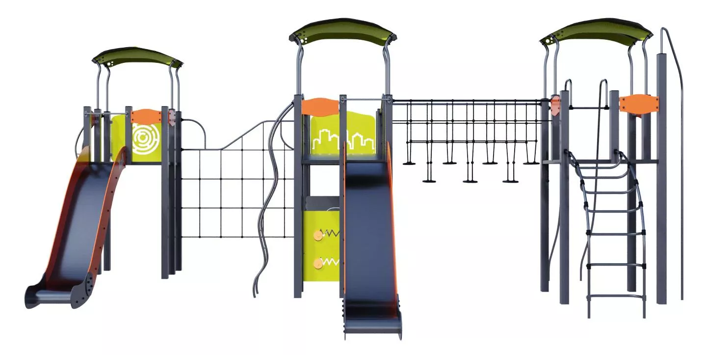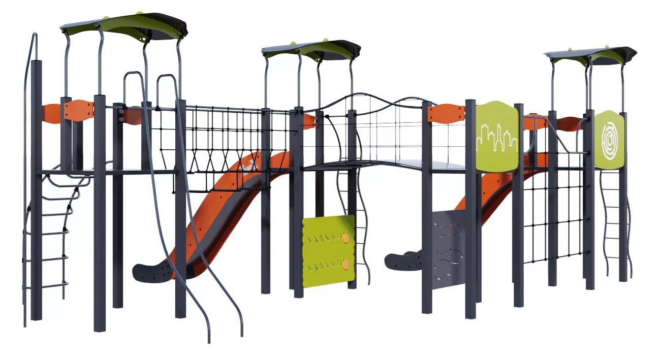 Детский комплекс - антивандальное оборудование, предназначено для установки в местах активного отдыха и на уличных детских или спортивных площадках.