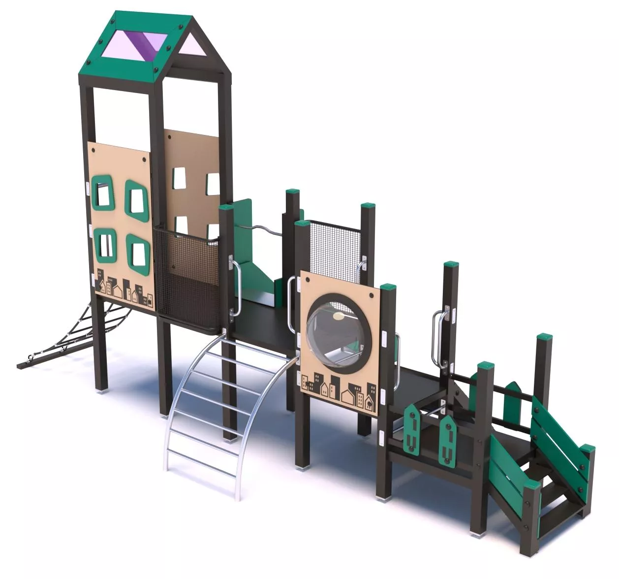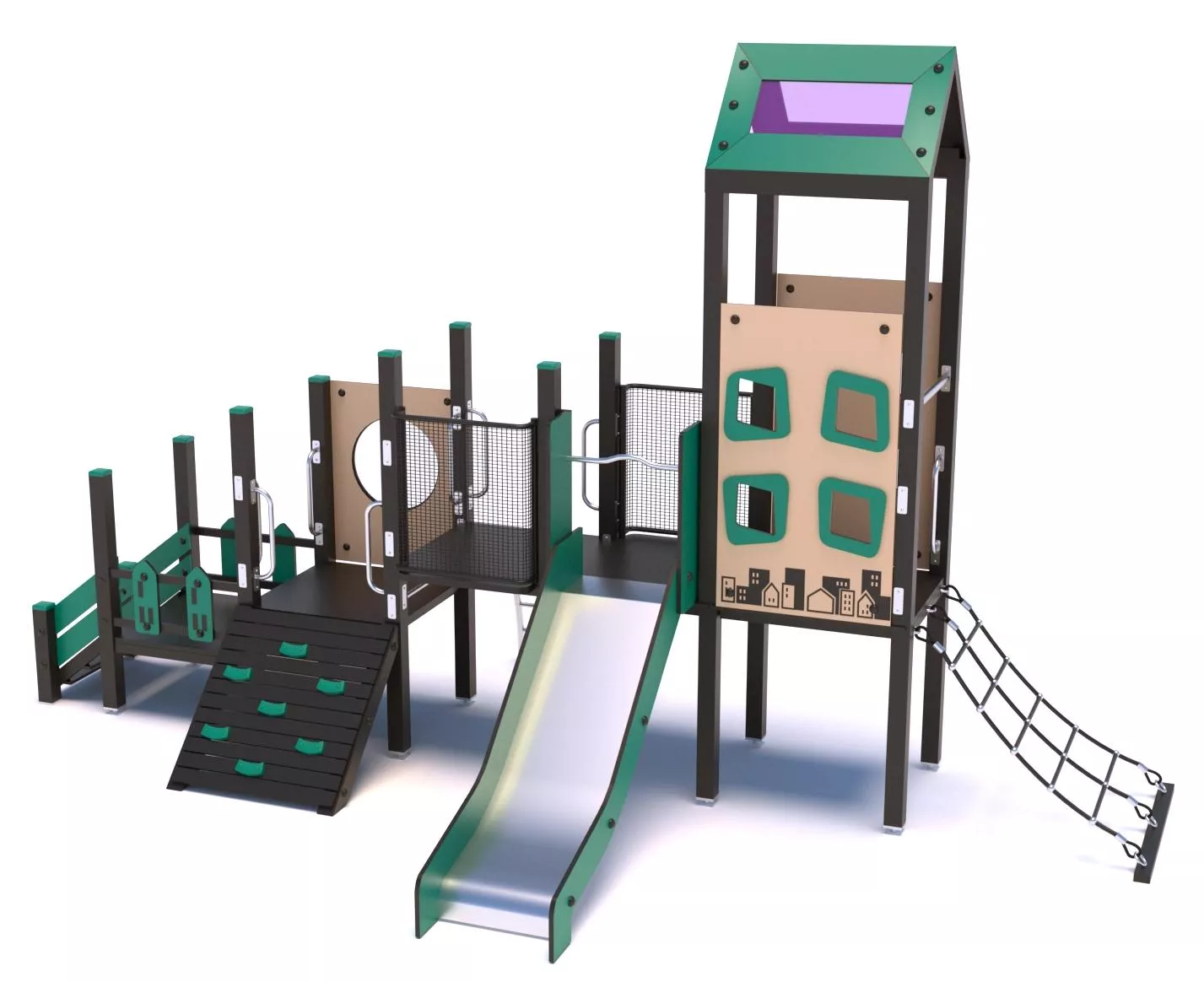 Детский комплекс - антивандальное оборудование, предназначено для установки в местах активного отдыха и на уличных детских или спортивных площадках.