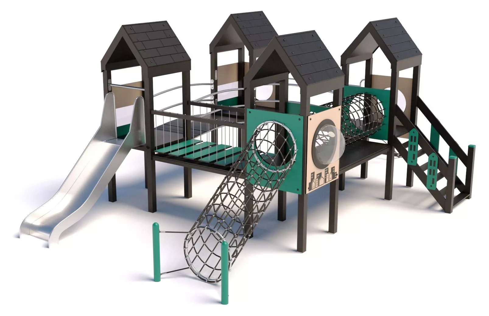Детский комплекс - антивандальное оборудование, предназначено для установки в местах активного отдыха и на уличных детских или спортивных площадках.