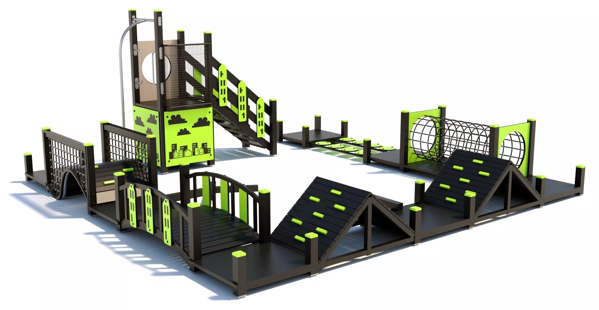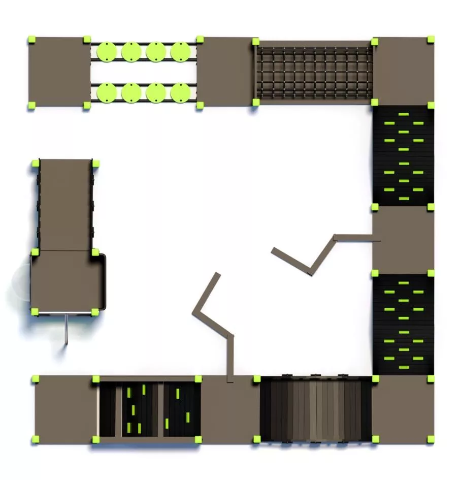 Детский комплекс - антивандальное оборудование, предназначено для установки в местах активного отдыха и на уличных детских или спортивных площадках.