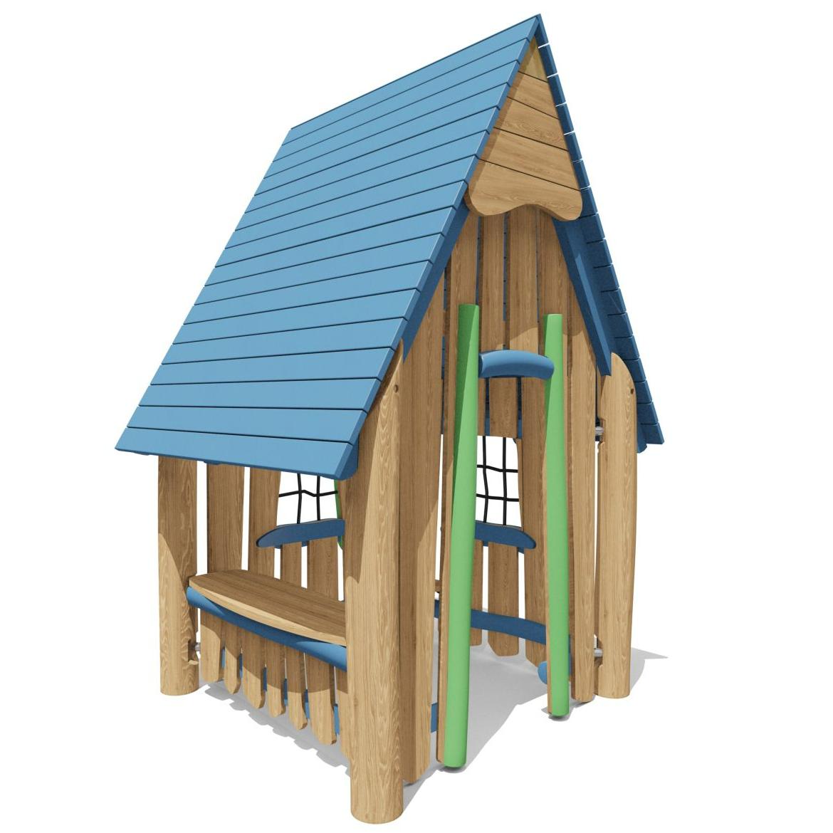 Домик Эко 061002 для детской площадки изготавливается из натурального дерева белая акация (робиния). Повышенная прочность и влагостойкость обеспечивается благодаря нанесению специальной пропитки, предотвращающей гниение. Вдобавок, происходит обработка противопожарным средством.