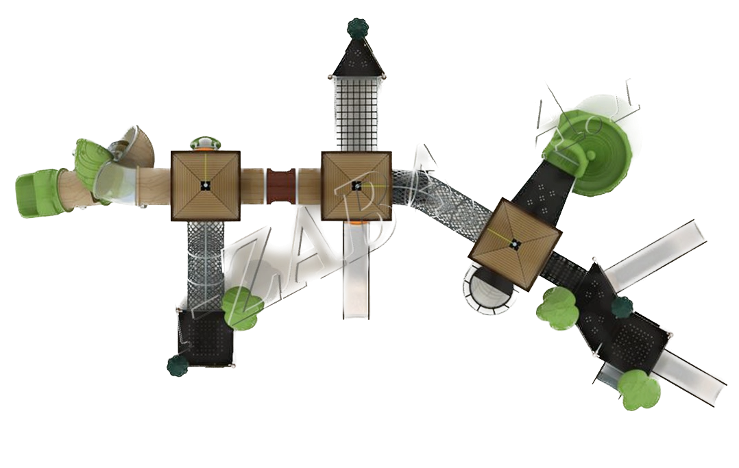 - Декоративные крыши в виде деревьев, арка и элементы вертикального лаза выполнены из LLDPE.