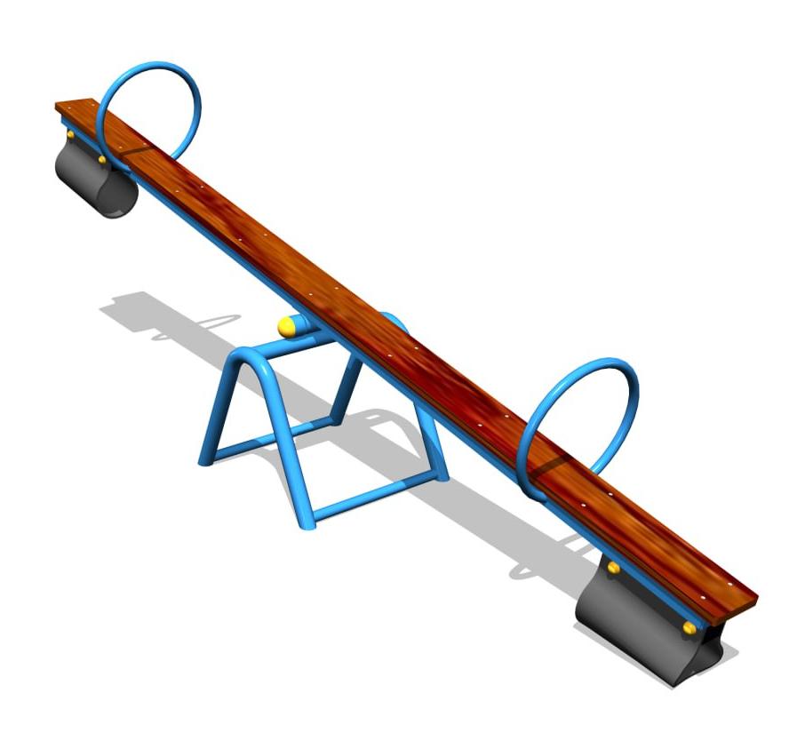 Двухместная качалка-балансир Малютка изготовлена из древесины хвойных пород закрепленной на стальном каркасе. Посадочные места расположены по краям коромысла качалки, подвижно закрепленного на оси основания.