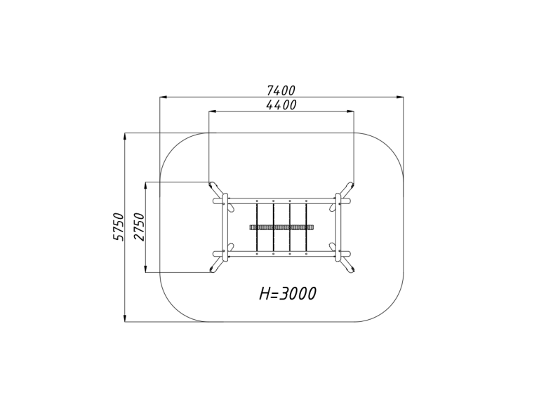 Монтаж оборудования производится путем бетонирования стоек в грунт таким образом, чтобы поверхность бетона была выполнена на отметке -200 мм от уровня земли. Оставшееся пространство ям после монтажа засыпается с уплотнением до поверхности площадки.