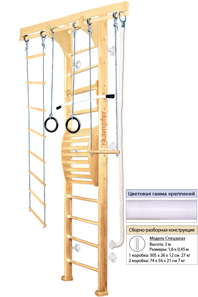 Комплекс Kampfer Wooden Ladder Maxi Wall Высота 3м представляет собой сборно-разборную деревянную конструкцию.