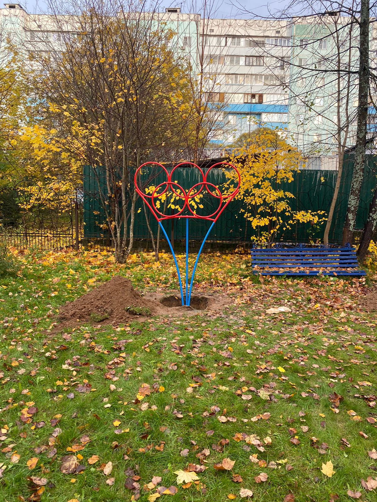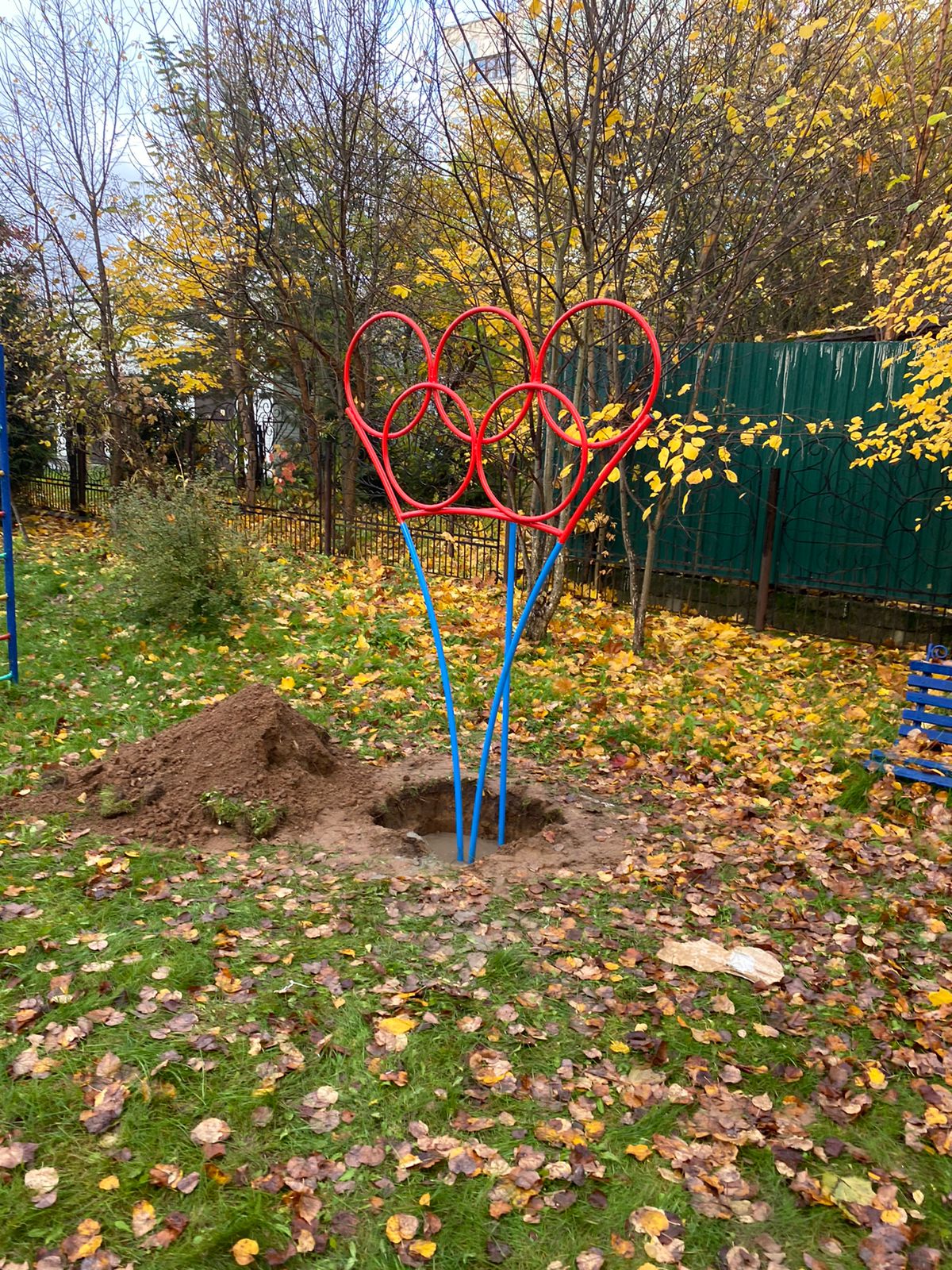 Мишень для бросания мяча Олимпийские кольца стилизована в виде пяти олимпийских колец размещенных на V-образной стойке-факеле.