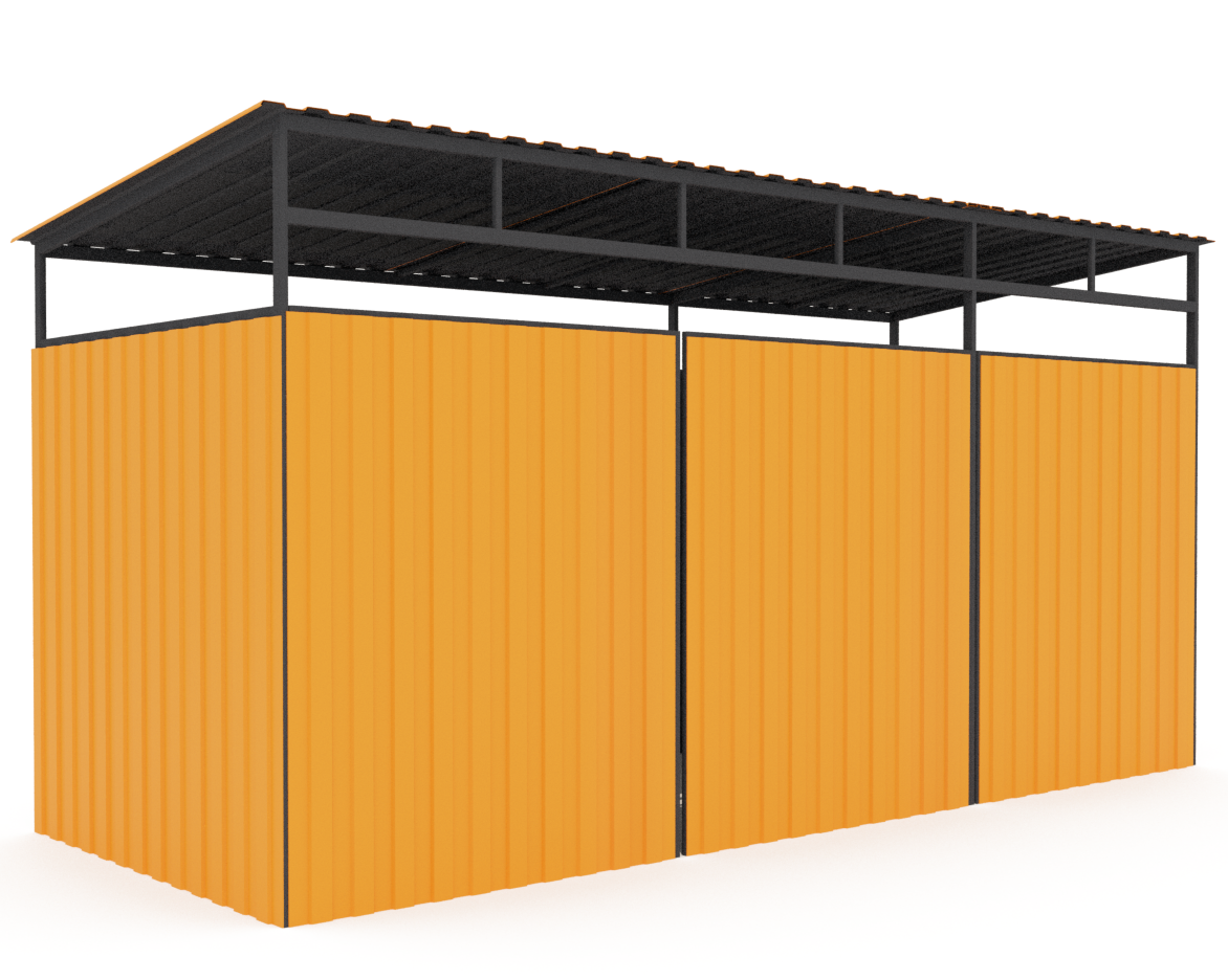 Навес для 3х контейнеров 21003.24 с воротами для мусорных баков