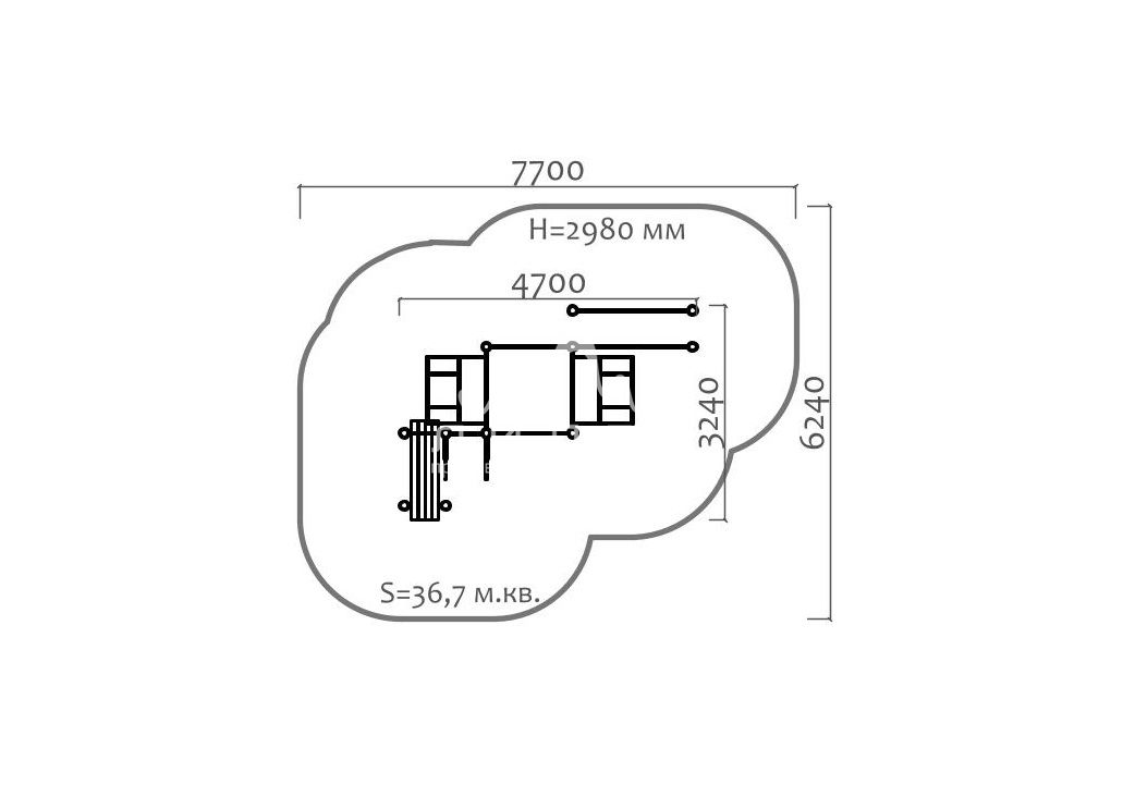 Монтаж оборудования производится путем бетонирования стоек в грунт таким образом, чтобы поверхность бетона была выполнена на отметке -200 мм от уровня земли. Оставшееся пространство ям после монтажа засыпается с уплотнением до поверхности площадки.