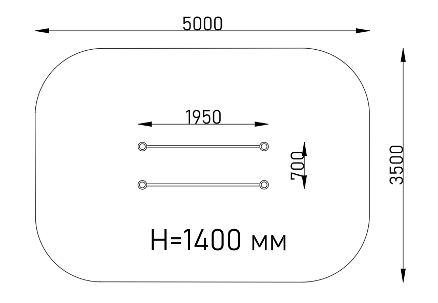 Монтаж оборудования производится путем бетонирования стоек в грунт таким образом, чтобы поверхность бетона была выполнена на отметке -200 мм от уровня земли. Оставшееся пространство ям после монтажа засыпается с уплотнением до поверхности площадки.