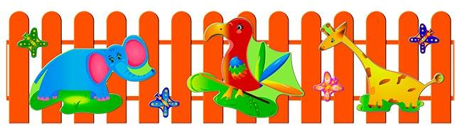 Слоны, жирафы и попугаи... Теперь на игровом участке для малышей всё, как в настоящей африканской саванне, если вы оснастили ее ограждением детской площадки «Африка». Фигурки животных выполнены при помощи прямой УФ печати и покрыты лаком.