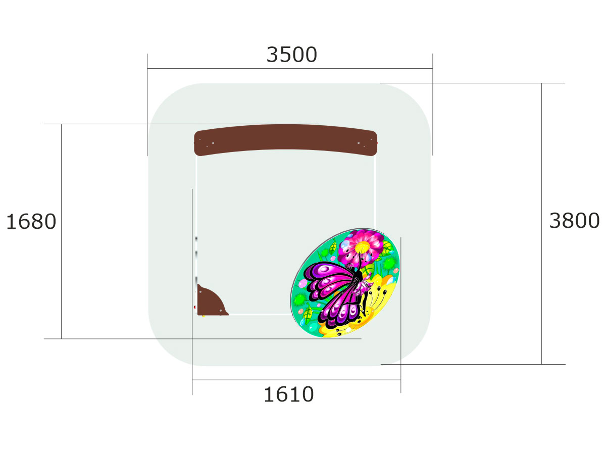 Песочница с крышей имеет размеры достаточные для комплектации стандартной детской игровой площадки. Небольшая крыша позволяет малышам укрыться в тени в самые жаркие часы летнего дня. Крыша украшена изображением бабочки выполненной при помощи УФ печати.
