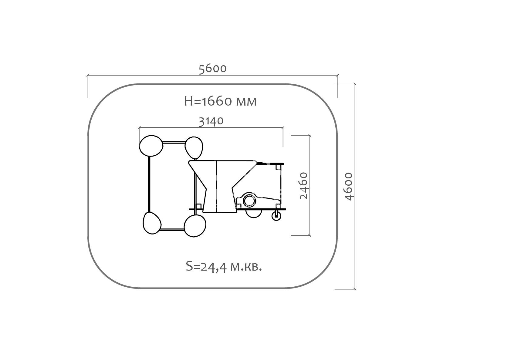 Монтаж оборудования производится путем бетонирования стоек в грунт таким образом, чтобы поверхность бетона была выполнена на отметке -200 мм от уровня земли. Оставшееся пространство ям после монтажа засыпается с уплотнением до поверхности площадки.
