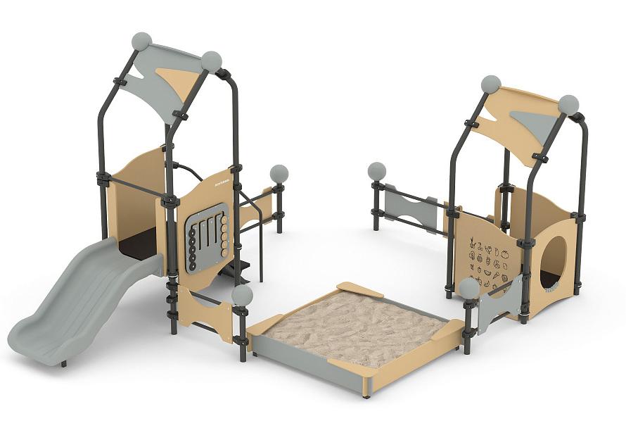 Песочный дворик Romana представляет собой устойчивую конструкцию, обеспечивающую безопасные условия для развивающих занятий на открытом воздухе.