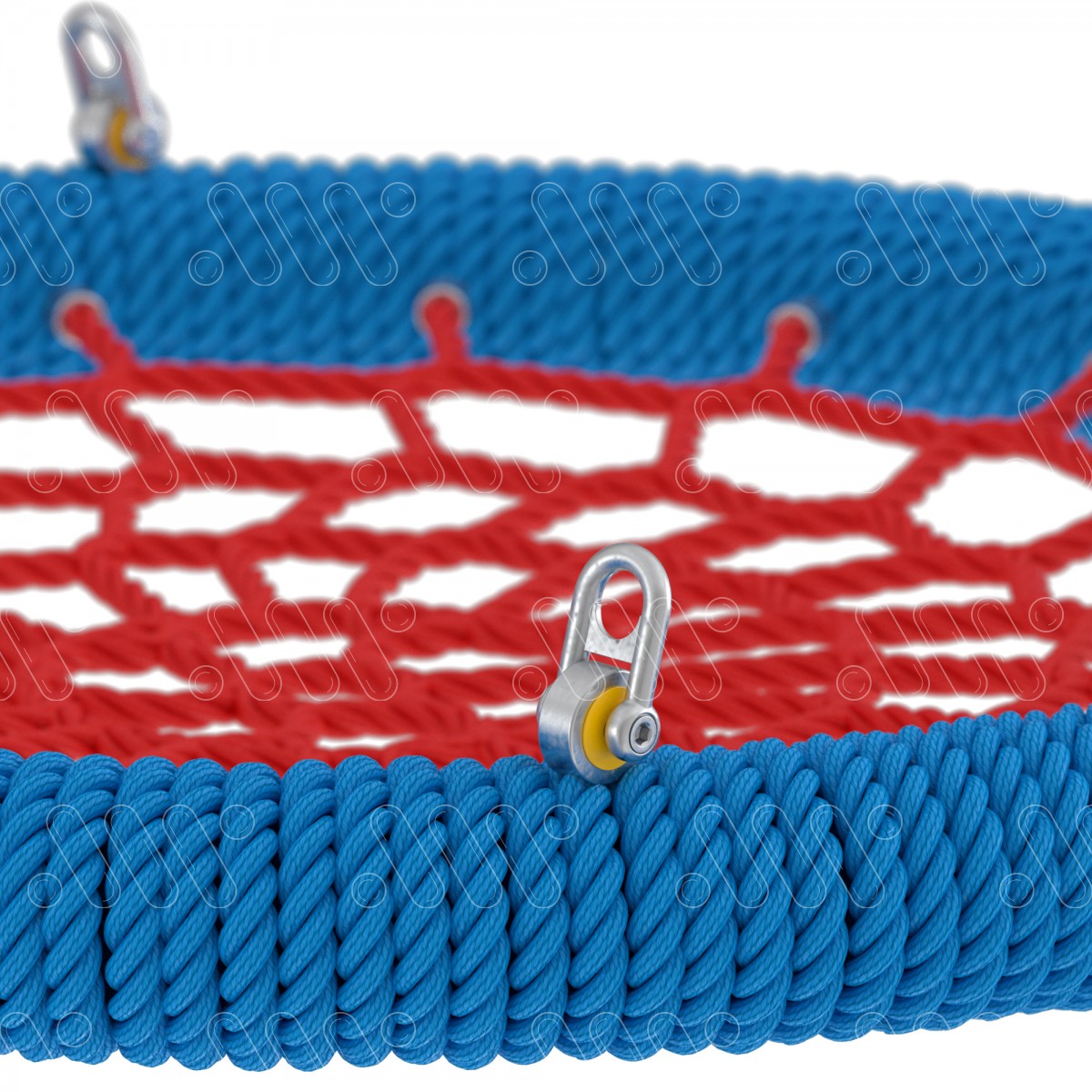 Плетение внутри обода сделано из четырехпрядного армированного каната Ø16 мм, подвесы выполнены из четырехпрядного армированного каната Ø16 мм.