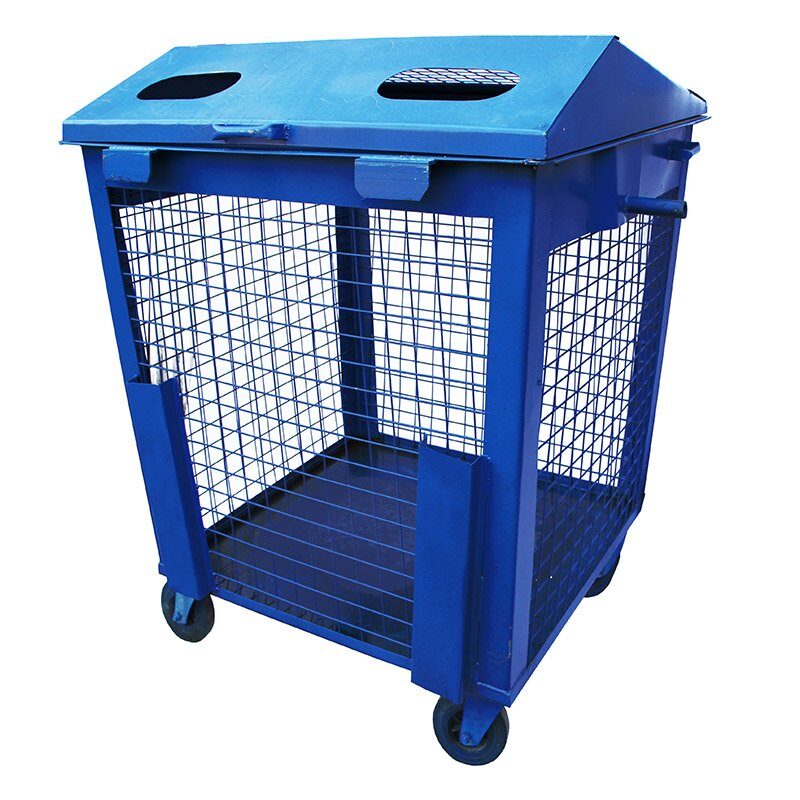 Металлический контейнер изготовлен из металла. Предназначен для сбора и временного хранения твердых бытовых отходов и устанавливается в мусороприемных камерах жилых домов или на контейнерных площадках.