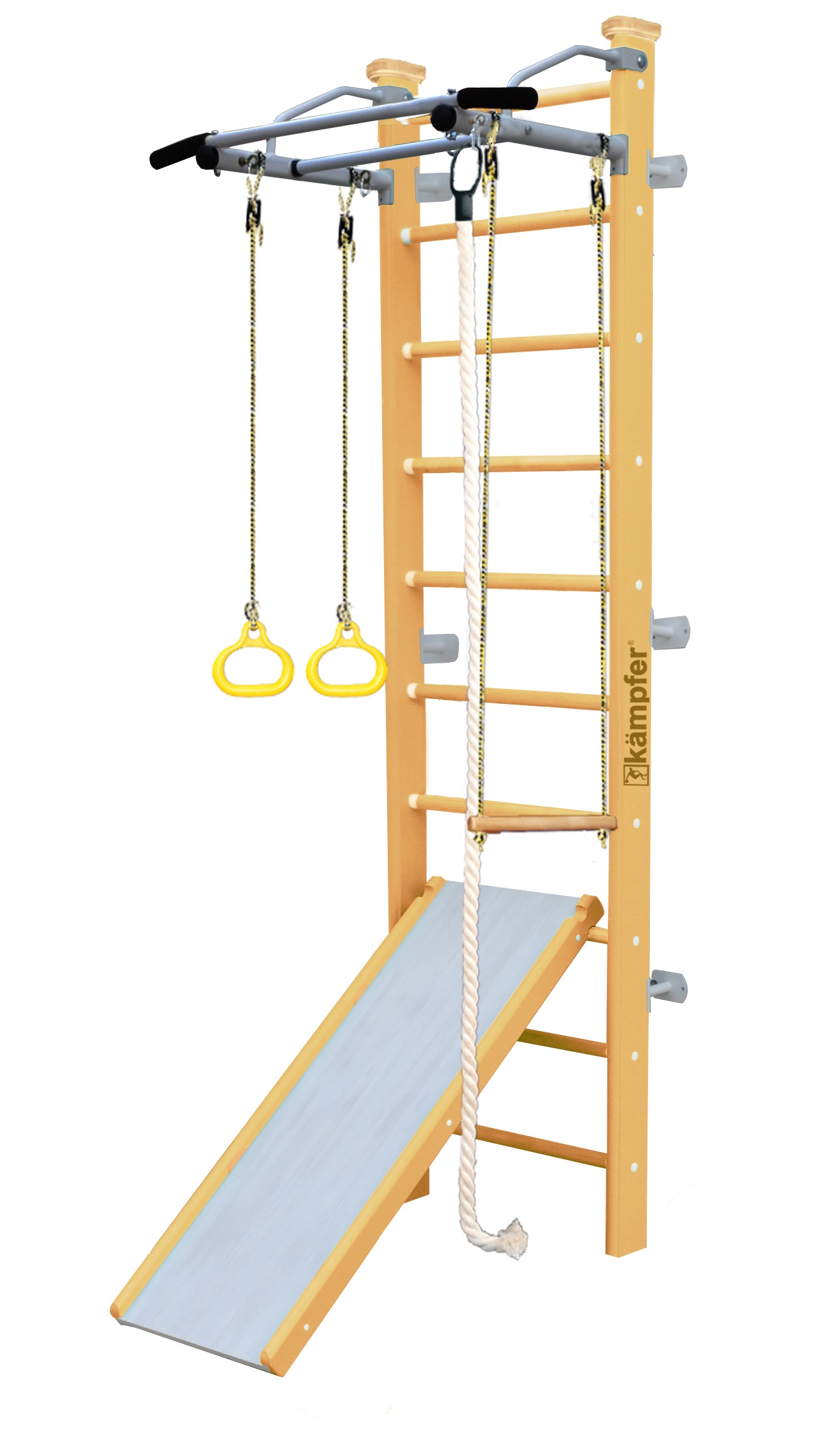 Конструкция шведской стенки Kampfer выполнена из натурального дерева, все края деталей немного скруглены обеспечивая большую безопасность для ребенка.
