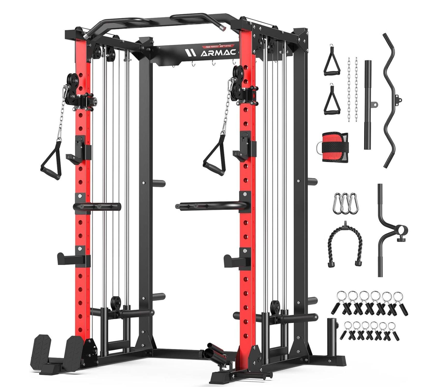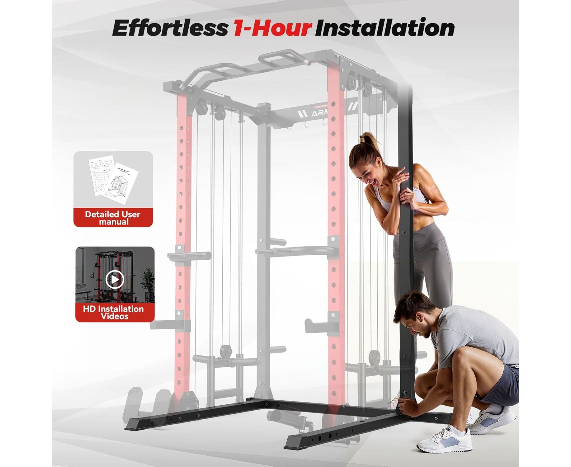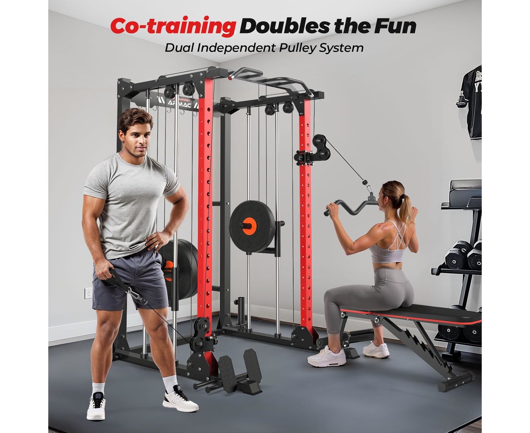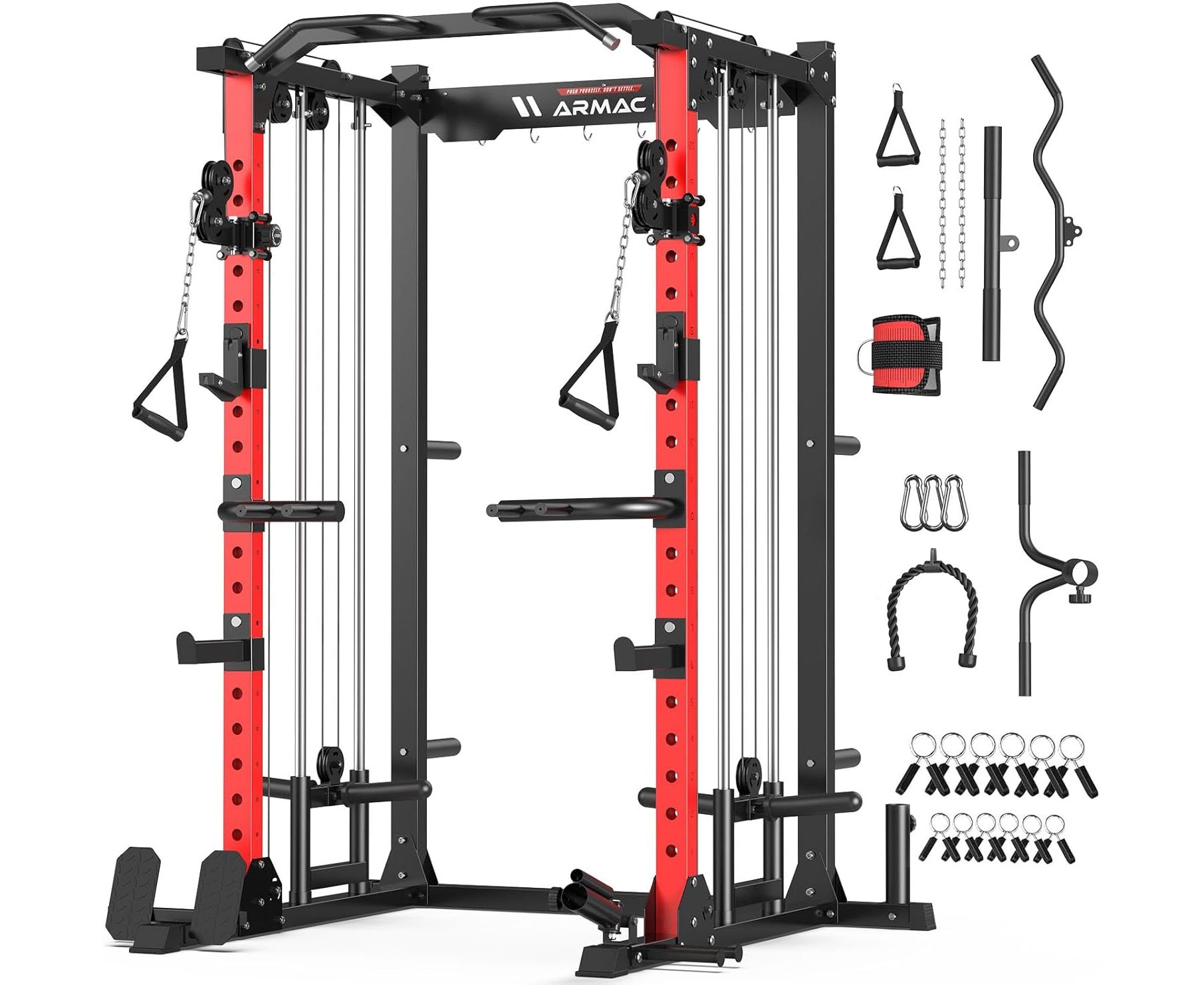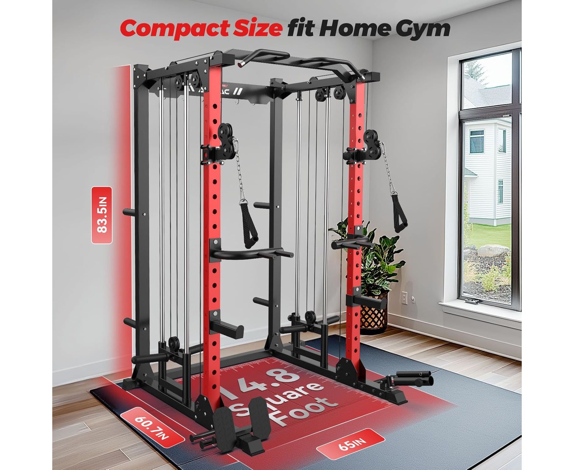 Силовая рама многофункциональная DFC D034 — компактное и удобное решение для домашних тренировок, позволяющее выполнять широкий спектр силовых упражнений, включая подтягивания, отжимания на брусьях, тягу верхнего и нижнего блока.: