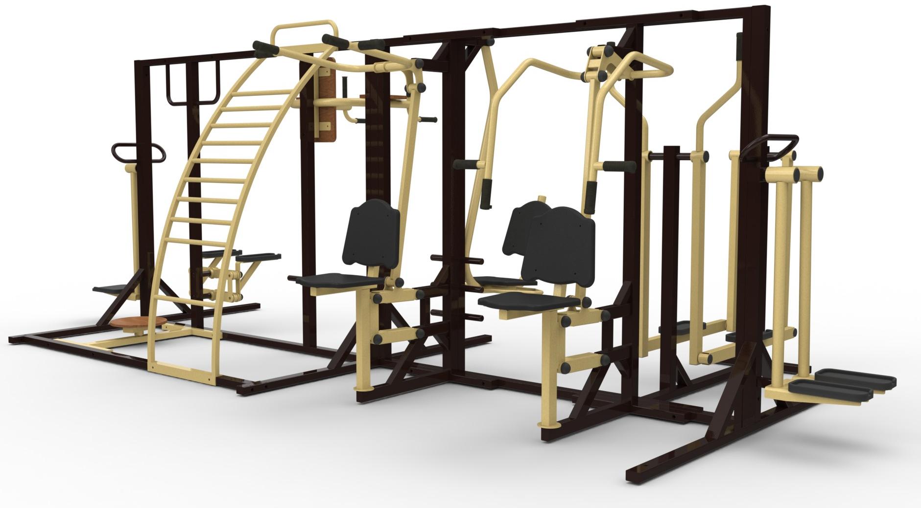 Большой мобильный комплекс тренажеров YTR001 собран из самых необходимых тренажеров для проработки мышц всего тела.