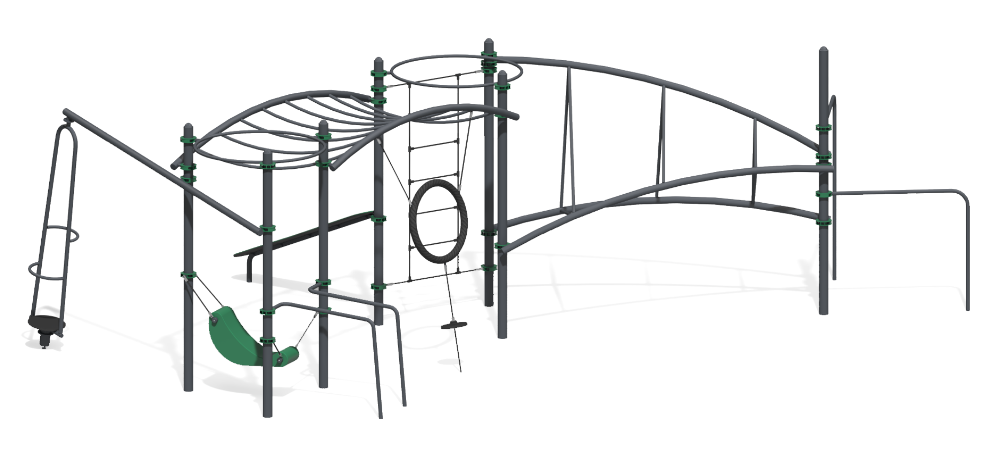 Спортивный комплекс изготовлен из прочных современных материалов. Оборудование не имеет острых углов и прочих травмоопасных элементов. Детали покрыты нетоксичными красками и лаками, защищающими от воздействия негативных факторов окружающей среды. Конструкции учитывают возрастные особенности детей и ориентированы на правильное физическое развитие. Спортивные и детские снаряды разработаны с учетом общепринятых стандартов и необходимых законодательных нормативов.
