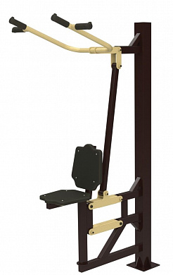 Уличный тренажер Вертикальная тяга предназначены для тренировки трицепсов и мышц груди.