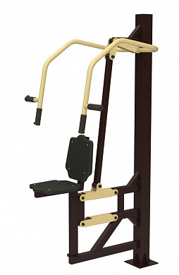 Уличный тренажер Жим от груди предназначен для тренировки трицепсов и мышц груди.