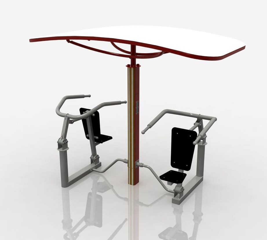 - Уличный тренажер предназначен для тренировки мышц рук в положении сидя.