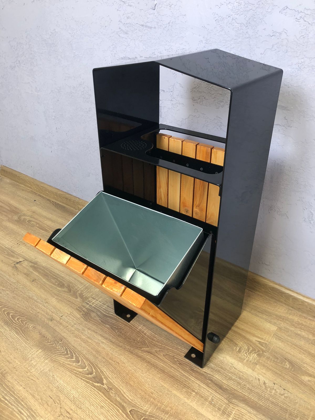 Классическая урна на металлическом каркасе с использованием натурального дерева (лиственницы). Устанавливается в парках, скверах, придомовых территориях и др.местах общественного пользования.