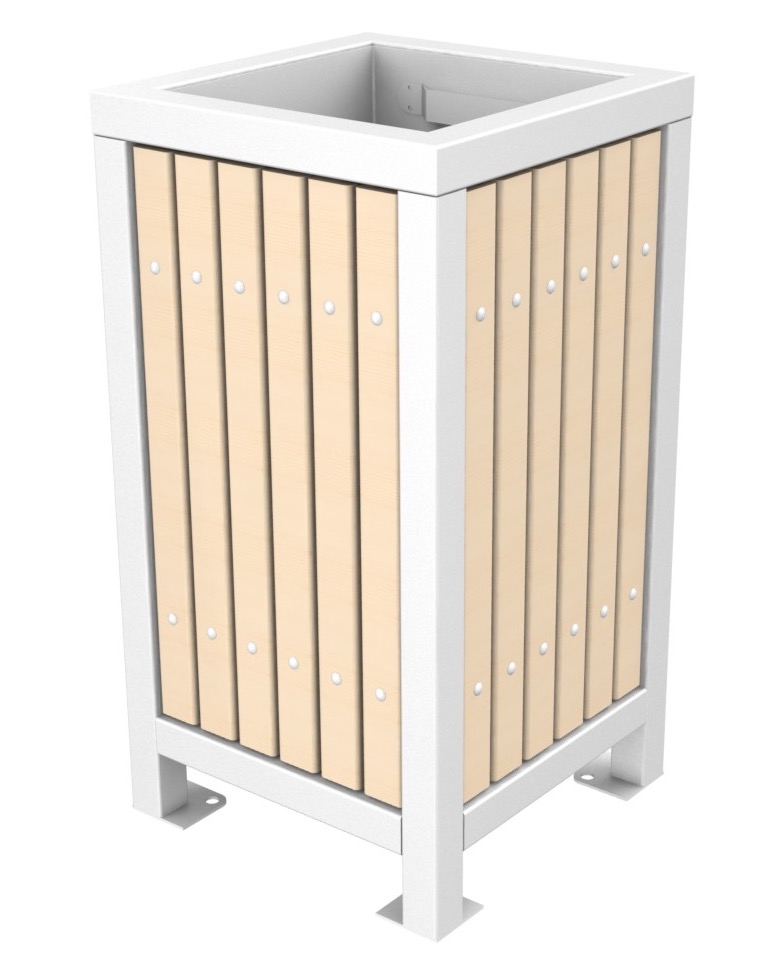 Классическая урна на металлическом каркасе с использованием натурального дерева (лиственницы). Устанавливается в парках, скверах, придомовых территориях и др.местах общественного пользования.