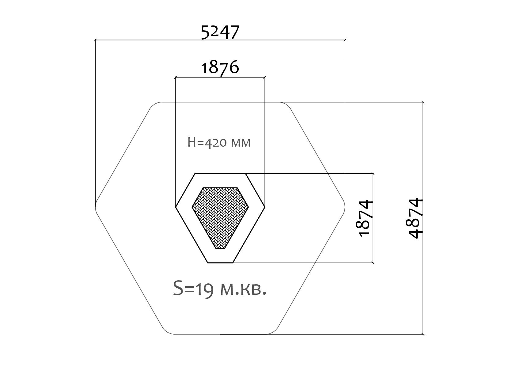 Батут шестиугольной формы с габаритами 1870 x 1876 мм для детских уличных площадок.