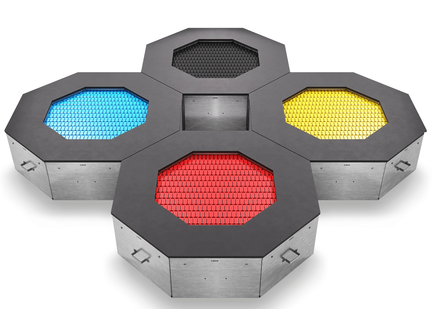 Набор встраиваемых батутов Восьмиугольник состоит из четырёх батутов Восьмиугольник.